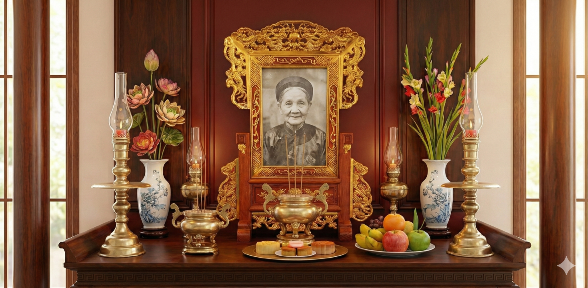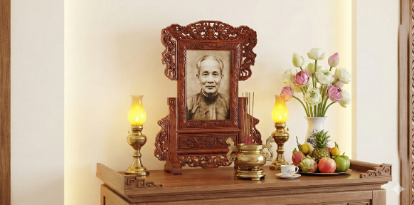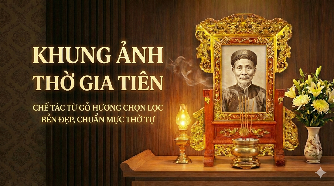 Khung vừa vặn giúp không gian thờ gọn gàng, trang nghiêm và dễ tụ khí tốt